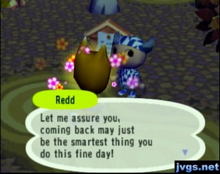 Keep looking around (it may be back at the original spot you saw him), and you will see Redd standing in front of a sign post. Talk to him, and he will walk into the sign post and disappear! Here is a video of the glitch that I recorded two years ago: Animal Crossing – Disappearing Crazy Redd Glitch.