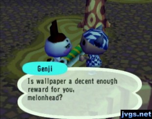 While talking to Genji, I accidentally asked him for a job. He asked me to get his comic book back from Static. No problem, Static was nearby, so I asked him. But Static said he lent it to Sydney, so I went to her house. She was sleeping outside, but I woke her up and then asked for the comic book. She told me Baabara took it. So I went into Baabara’s house. She told me she gave it to Tom. So I went up to Tom’s house, and fortunately, he actually had it. I then returned it to Genji and he rewarded me with a stately wall.