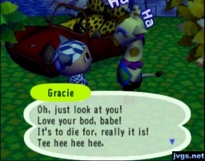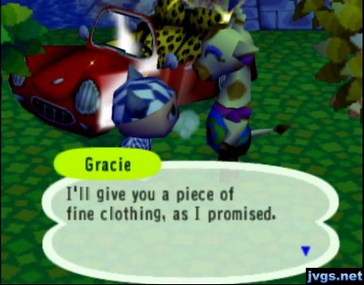 It’s a bit out of season…shouldn’t Gracie of all people realize that fact? After that, my pockets were full and I couldn’t sell my stuff because Nookington’s was closed (as it often is when I play). I mailed away a few fossils to be identified, and then headed home to save my game.