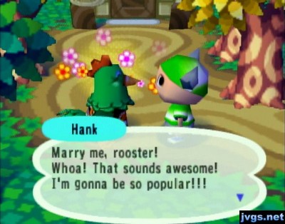 Hank: Marry me, rooster! Whoa! That sounds awesome!I sold some fossils and furniture at Nook’s, mailed away some new fossils (and deposited money into the bank) at the post office, checked the dump (nothing good), and then headed for home.