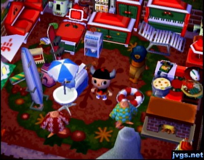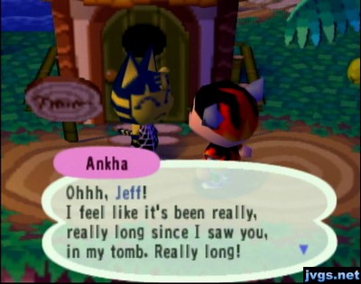 After that brief chat with Ankha, I put those items into my island house. My room there is a horribly cluttered mess of jingle items, beach/island items, igloo items, gyroids, and other miscellaneous crap.