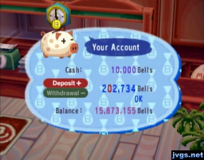 I returned to the mainland and did some more fishing until I had over 200,000 bells to deposit into my bank account.