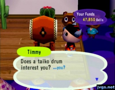 I started up the game around 5:15 p.m., which means I got to hear the 5 p.m. music…one of my favorites. I went to Nook’s to sell my fish from last night. I also saw they had a taiko drum on sale. It just reminded me of the Taiko Drum Master games. And it made me sad, because they keep announcing all these Taiko Drum Master games for Wii in Japan, and they never got released in America.