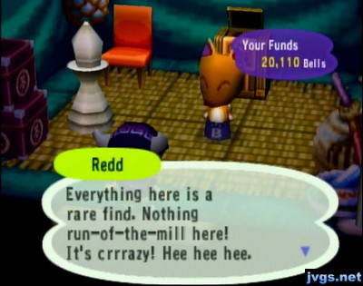 Redd: Everything here is a rare find. It's crrrrazy!By the way, there is a cool glitch that only works on Sale Day. Crazy Redd can disappear from his spot in front of his tent, and reappear at another sign post, where he will then vanish into thin air. If you want to see a video of the glitch, click here.