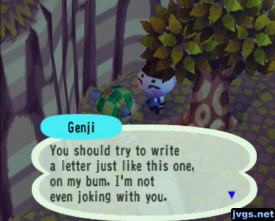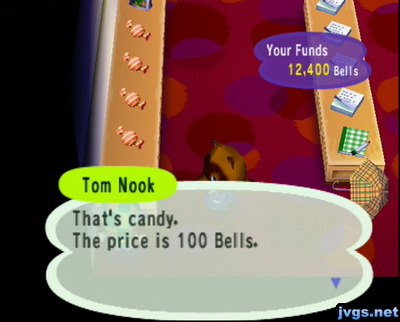 Tom Nook: That's candy. The price is 100 bells.When I talked to Genji, he showed me a letter and then said I should try to write a letter like that, on his bum. But I’m not going anywhere near it!