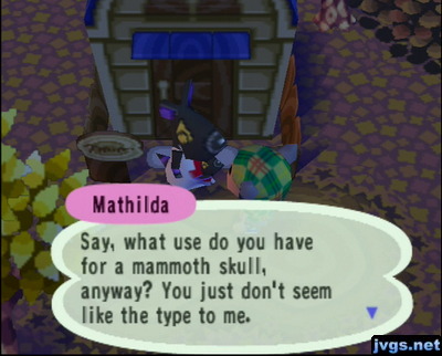 Mathilda: What use do you have for a mammoth skull?But she was talking about the fossil in my pocket, and I sold it to her for 2,400 bells. I then went up to Nook’s, where Tom Nook now has candy for sale. If you plan on participating in the Halloween festivities on the 31st, you’ll definitely want to start stocking up on candy now!