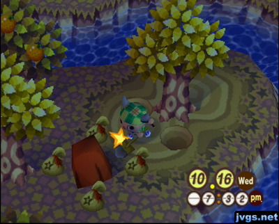 Genji: You should try to write a letter like this one, on my bum.And I don’t usually try for the money rock, but I did today. I got seven bags, good for a total of 13,300 bells.