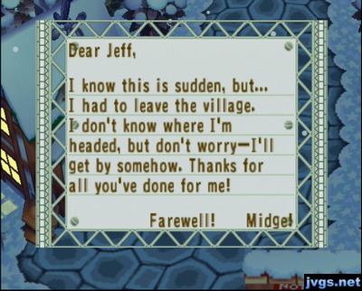 I got a goodbye letter from Midge in the mail today; she has recently moved out of town.