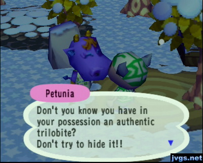Petunia: You have an authentic trilobite! Don't try to hide it!She offered me a regal wall for it, but I declined. Trading a fossil for wallpaper is not a fair trade. So of course, she got mad that I turned her down.