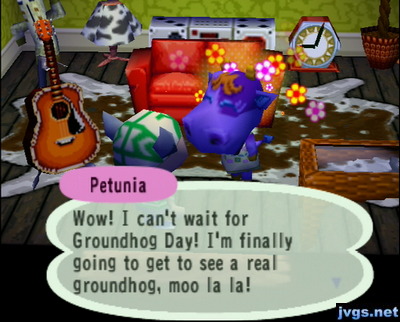 There are only 14 villagers in town now, so that means her replacement has not moved in yet. I went to say hi to Petunia, and she was looking forward to Groundhog Day on Sunday.