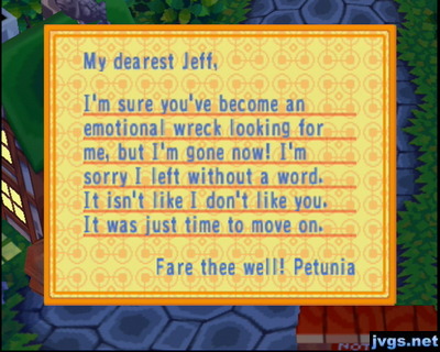 Of course the snow has melted since my last update, so that’s nice to see. I checked my mail and found a goodbye letter from Petunia.