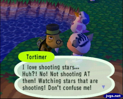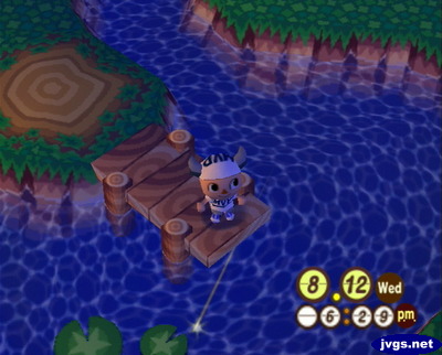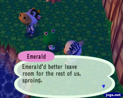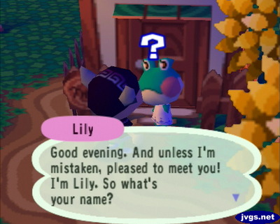 To the southeast of Candi’s house, I saw a green frog. I thought it was Emerald at first, and I wondered why she was so far from her house. But then I spoke to the frog, and I saw that it was actually Lily! I’ve had Lily in my ACCF town for a while, until she moved out in June. But now I know where she was moving to: My GameCube town! 😛