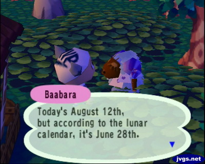 I met up with Baabara, and she was telling me that August 12th is June 28th according to the lunar calendar. And according to my calendar, Baabara is a bit loony.
