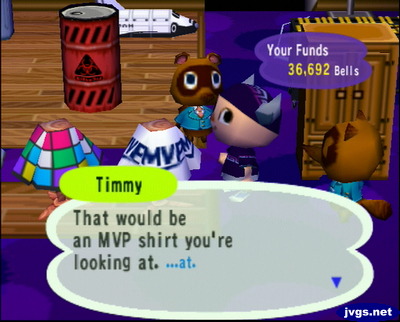 After fishing a huge arapaima out of the river, I went up to Nookington’s. I felt it was time to change my clothes, so I bought this MVP shirt.