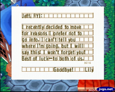 Baabara wants to move out.She said she can now move away without hesitation. Of course, there’s no truth to this. Unlike similar conversations in later Animal Crossing games, on GameCube they don’t actually result in the animal leaving. I wouldn’t mind if Baabara proved me wrong, though! I wooldn’t miss her a bit.