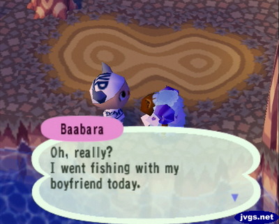 I had a chat with Baabara over by the river, and she told me that she went fishing with her boyfriend today.