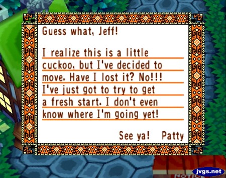 Unfortunately, Forest is all out of juice. Tangy has been squeezed out of town; I got her goodbye letter in the mail today. Her replacement is Bubbles the hippo. I really don’t like hippos, but she seems fairly nice.