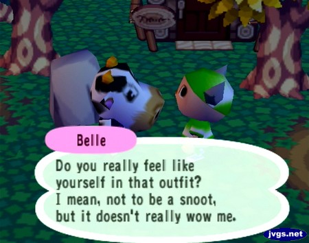 I don’t dress to please you, Belle. Besides, at least I’m not a clone of a previous villager. 😛 On the bright side, she did give me a spiderweb shirt for free.