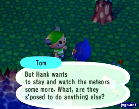 Hank told a slightly different story, though. He said he wanted to watch the meteors by himself, but Tom wouldn’t leave him alone. 😀