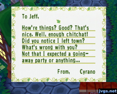 I got a letter in the mail from Chow; he has moved out of town.