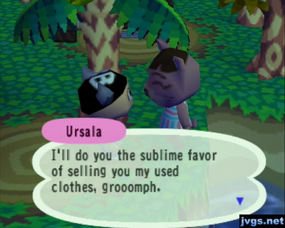 Over by the ocean, I made the mistake of speaking to Ursala. She forced me to buy some of her clothes.
