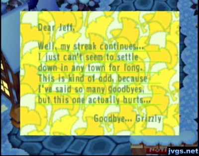 Even though I didn’t watch the New Year’s countdown at the lake, I did start the game up about 20 minutes into the new year. I got a goodbye letter from Grizzly.