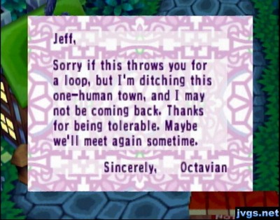 I talked to Puck and he asked me if I have a Game Boy Advance. I told him yes, and he talked about connecting the Game Boy Advance to the GameCube to visit the island. He said he wants to ride the boat and let his fingers dangle in the water. But Puck…you don’t have fingers.