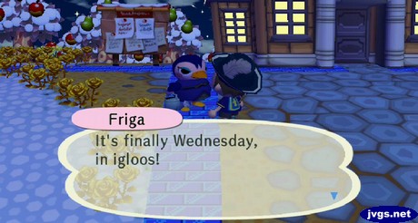 I spoke with Friga, and she was happy that it’s Wednesday…in igloos. Apparently she was just looking forward to her weekly manicure.
