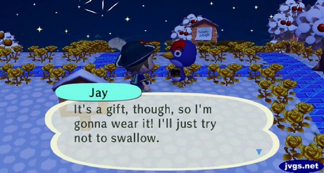 Aurora also asked me to make a delivery, this one to Jay. It was a samurai suit, and Jay wasn’t thrilled with it. But he put it on anyway, saying he’ll try not to swallow. I don’t even want to know what that means.