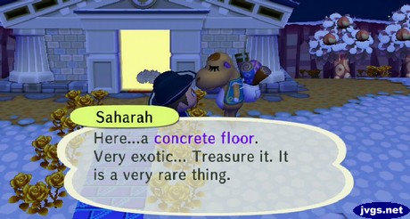 And right when I was about to wrap up my night, I spotted Saharah in town! She wanted some old carpets, so I quickly went around town to ask my villagers if they had any of them. Twiggy had one for me, and I used that along with two I had in storage to give to Saharah. In return, she gave me an “exotic” concrete floor. While I don’t agree about it being exotic, it was an item that I needed for my checklist. So I’ll gladly take it.