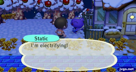A bit later on, I ran into Static again. He asked me for a new greeting. I couldn’t think of anything good, so I just told him to say “I’m electrifying.”
