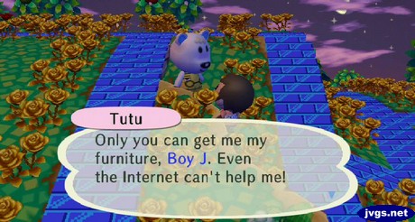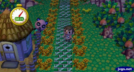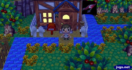 After I went up to Able Sisters to change my path pattern to green bricks, Chow asked me to play a game of hide-and-seek. I had ten minutes to find him, Twiggy, and Static. About 90 seconds into the game, I found Chow hiding behind Tutu’s house.