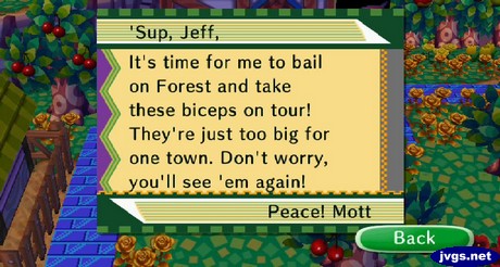 Happy Leap Day, everyone! As I started up the game today, I got Mott’s goodbye letter in the mail. He said his biceps are too big for one town, so he’s taking them on tour.
