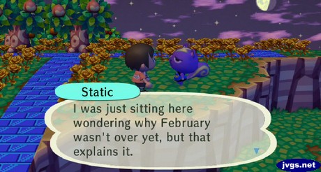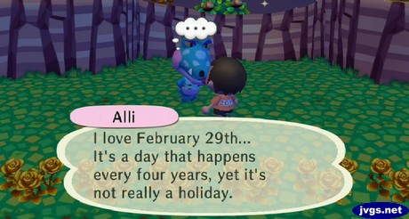 Villagers may also mention that it’s Leap Day. For example, Static was wondering why February wasn’t over yet.