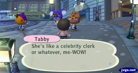 I took the bus out to the city, and it was snowing there. But it felt more like Halloween than Valentine’s Day when I saw Tabby! She seemed smitten by the clerk in Gracie Grace.