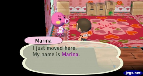 When I returned to Forest, I found a new house in town: Marina the octopus just moved into town! And her lovely carpet has hearts on it–quite appropriate considering her moving-in date!