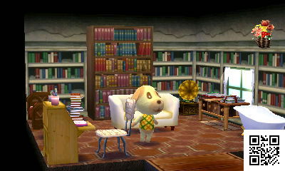 I was asked (in a comment) if previously designed homes could be uploaded to the Happy Home Network. I figured it was probably possible, so I gave it a try. I returned to Goldie's house, and I had to tell her I wanted to re-design her house. Even though I wasn't making any changes, I spoke to her again and told her I was done. I was then able to upload the house. If you'd like to visit it, the code is 0508-7741-338. Or you should be able to use this QR code.