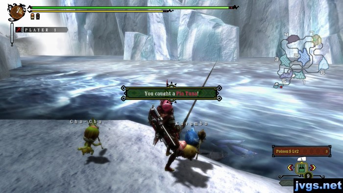 I quickly realized I’d made a huge mistake. You can’t fight a quick rabbit with this slow thing. Even if you try from a distance, you’re going to miss or the Lagombi will quickly charge at you. And that’s what it did. It killed me quickly. It was clear I wasn’t going to beat him with this weapon, so I just went down by the river to watch the glaciers go by and do a little fishing.