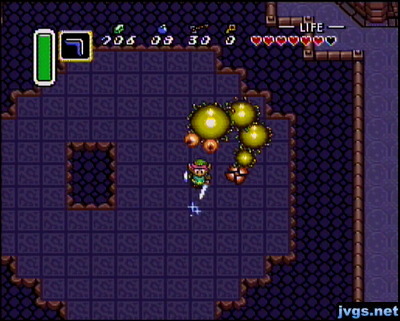 The boss of this dungeon is Moldorm, a large yellow worm that you must fight on a relatively small platform with no walls.