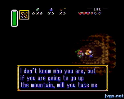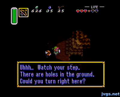 I was overdue to resume my adventure in The Legend of Zelda: A Link to the Past for SNES. I needed one more pendant, and it just happened to be up on Death Mountain. So I headed up that way, when I ran into an old man who insisted on following me into a dark cave. If Fi was in this game, she might have told me that she’s 95% certain that going into dark caves with a stranger isn’t the best idea. But she’s not, so I did.