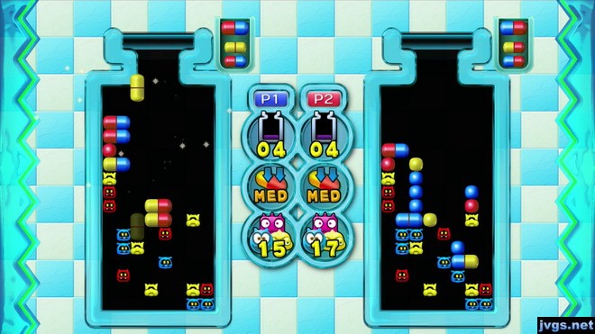 Having pills in this shape will sometimes allow you to clear a virus using just one piece. But overall, the extra pills stuck together are more of a hindrance than a help. After you get over the novelty of having L-shaped blocks, it just feels like a slightly less enjoyable version of Dr. Mario.