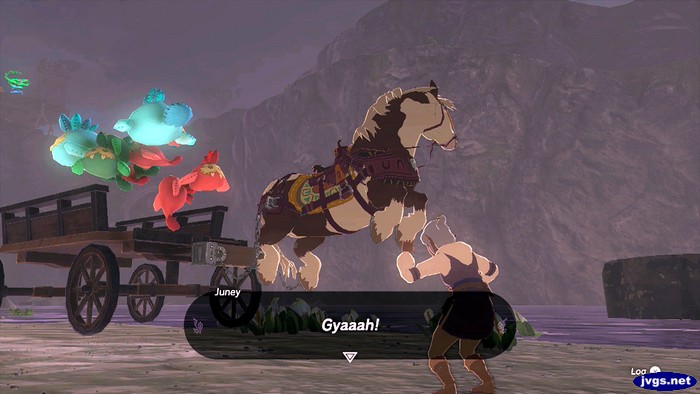 I took some photos of some ducks, and other wildlife, along the way. The ride took over seven minutes of real time (and almost seven hours of in-game time)! And once we arrived at our destination, we were greeted by none other than Magda the crazy flower lady from Breath of the Wild!