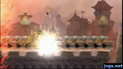 The third level was called Castle Rock. And it really caught me by surprise. A fire is on the left side of the screen, moving towards you, so you have to constantly run. This forces the action along, but it’s for a good reason. The entire level is set to music, much like in Bit Trip Runner. Every sound effect of hitting enemies, things blowing up, everything goes along with the song. It’s freaking awesome. This is one of the coolest levels I’ve seen in a platformer in years. I don’t know if the final game will have many levels like this, but I sure hope so. Rayman Legends wasn’t really on my radar before this, but it sure is now.
