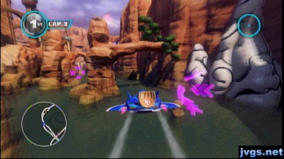 I first tried out the Sonic & All-Stars Racing Transformed demo. I played the only race available at the start, a Panzer Dragoon themed course. It felt like pretty standard kart racing at first. But even within a single race, each lap is different. Very different, in fact. At various points, your car changes into a boat or a plane. It reminded me of Diddy Kong Racing, which had car, hovercraft, and plane races. But DKR didn’t change vehicles mid-race like Sonic does. So that’s pretty cool.