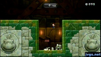Other categories require you to perform certain tasks. For example, in this level, there are three Dry Bones. Jump on them repeatedly, without ever hitting the ground, to earn 1-ups. And Dry Bones stay “dead” for a while after you crush them, so you’ll have to kill some time by bouncing off the walls. And if you touch the ground for even a split second, your game is over. To earn a gold medal, you’ll need to earn 30 1-ups. Very tedious and not fun at all.