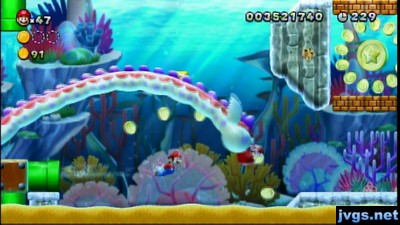 New Super Mario Bros. U - Water WorldThat includes this level, where an annoying sea dragon stalks you the entire time. I’m not a big fan of underwater levels.